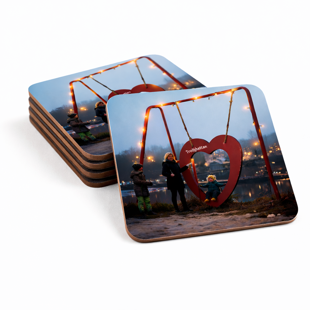 Stilrena glasunderlägg i naturlig kork med eget tryck. Perfekt för att skydda dina bord och ytor samtidigt som du skapar en personlig touch i hemmet.